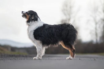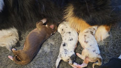 DOB: JANUAR 24, 2025 | GRÖßE: WÄCHST NOCH | GEWICHT: NIMMT NOCH ZU | GEBISS: VOLLSTÄNDIGES WELPEN GEBISS | SCHERENGEBISS | ASCA DNA: VP | RUTE: LANG | BLUE MERLE W/C |