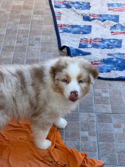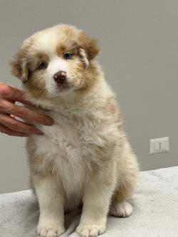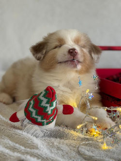 DOB: 01 NOVEMBER 2025 | GRÖßE: still growing | GEWICHT: still gaining weight | GEBISS: FULL DENTITION | SCISSORS | ASCA DNA: CP | FCI: LOI | RUTE: LANG (KUPIERT) | RED MERLE W/C |