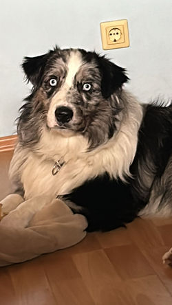 DOB: OKTOBER 05, 2023 | GRÖßE: 50,8 cm | GEWICHT: 20 Kg | GEBISS: VOLLSTÄNDIG | SCHERENGEBISS | ASCA DNA: CP | FCI: LOF | RUTE: LANG | BLUE MERLE W |